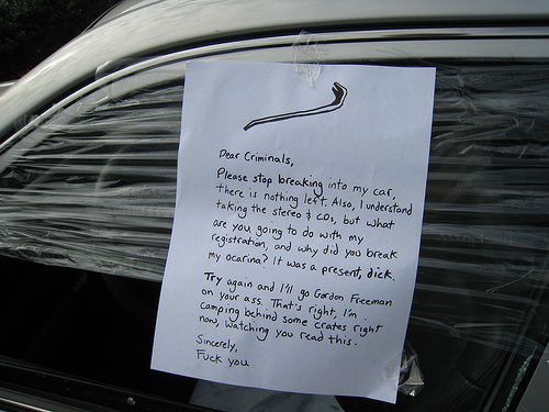 Dear Criminals, Dear Car Thieves