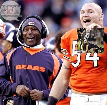 The priest climbed into the rear passenger seat, and we continued down the road. Suddenly, I saw a Bears fan with his "C" coat, walking down the road.