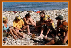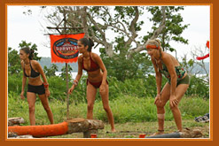 The women are ruling the roost!!! I really thought the alliance between Julie Berry, Twila Tanner, Lea "Sarge" Masters, Chad Crittenden, and Chris Daugherty would hold. But alas, the ladies screwed the guys and Sarge took an army boot to the rear. He was a pretty good guy, so I was sad to see him go. It's getting harder and harder to find anyone to root for since I don't like any of the other ladies. Ami Cusack seems to have issues with men in general, Eliza Orlins is annoying as nails on a chalkboard, and Scout Cloud Lee is a wacked-out hippie!! It was kind of fun to see Leann Slaby and Julie Berry helicopter off on their little trip together, but I really can't root for either because Leeann has just seemed to slide through without controversy and Julie backstabbed Twila and the boys. Chad Crittenden is the last one I like remaining, not just because he's a Cripple, but because he seems to have a really good head on his shoulders. It will be tough row to hoe to outlast the women, since they seem to want to eliminate anyone with a penis, but hopefully Chad will find a way!!