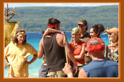This week's episode was definitely the best so far this season! CBS did a good job making it seem like Chris Daugherty was definitely leaving the island this week. It was pretty funny watching him scream at his fiancée during the immunity challenge because he was so sure he was going home... Who would have thought that Twila Tanner would have it in her to orchestrate a coup like this? She was the one who pushed Chris to wake up and see that Leann Slaby was getting awfully cocky regarding her position in the tribe. That's always a great opening to shift alliances to crush the person who thinks they're in charge! Beautiful girls Ami Cusack and Julie Berry were left scratching their pretty heads when Leeann's name started showing up on the vote cards! Leeann looked completely flabbergasted!! It's hard to believe that Eliza Orlins and Scout Cloud Lee were able to trust each other enough to do this with their mutual desire to see the other get kicked off the island. It was just so much fun seeing Leeann get shocked at Tribal Council! It really renewed my interest in this season's shows! I hope that Ami and Eliza go next in no particular order. Eliza's mom was just as annoying as her, although it was pretty cool when she gave her daughter the shirt off her back and rode away on the boat in only her bra! And I find myself starting to root for Twila...just because she was such an unlikely person to make it this far and I gained a completely new respect for her because the way she rocked the vote!! Go get 'em, Twila!