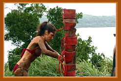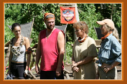 This episode was a little bit spicier with Mia Galeotalanza and Twila Tanner going at it in a Butch Vs Butch Battle Royale. They claimed their anger at one another was because of differences of opinion over how hard Mia works, but I know the real reason they went off on each other. These two supposedly hetero-sexual women were both competing for hot lesbian playboy model Ami Cusack's attention. Mia definitely has the advantage in the looks department, but Mia looks like she definitely has more experience in playing the man role in a whole bunch of different situations! Mia went home after tribal council and Twila became quite giddy at the prospect of Ami doing her hair and nails, so hopefully we'll get to see Ami in action yet!! Eliza Orlins's voice is like fingernails on a chalkboard. Not much action in the men's tribe. They voted off John Palyok which is basically meaningless to me. I don't remember anything about the guy. It seems like there's an alliance of the older dudes to vote out the younger and stronger fellows, but there doesn't seem to be any reason to care. I do kind of like Lea "Sarge" Masters who seems to think his tribe is a platoon of men he's developing for a combat mission. And my favorite, of course, is still The Crippled Stud Chad Crittenden!! Did you see how he kicked ass in the Immunity Challenge? Even though he lost it in the end, he was so close to building the ladder ahead of all the two-legged men. Chad definitely lends credence to my theory that one day we cripples will rise up and conquer this planet!!!