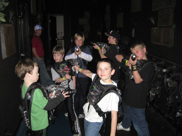 We thought we'd do something special for our final den meeting and decided to take the boys to Triple Play Sports where they could play Unlimited Laser Tag. After 5 years of den meetings and pack meetings together, there was a lot of built up aggression towards one another so we felt this would be a good, healthy release for them to unload it.