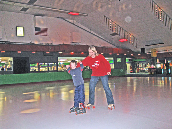 So we started out with skates we brought. But after awhile I just wasn't feeling a hundred percent satisfied. So I removed my inline roller blades and went to the counter and asked for some of their skates. Putting on those tan shoes and orange wheels brought me back to a time and place where I was a god of the hardwood floors!