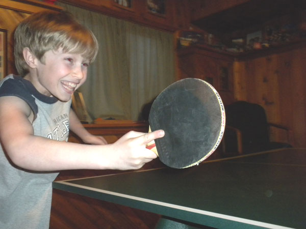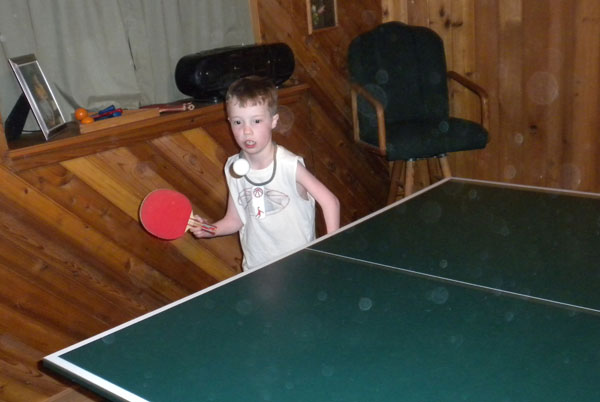 Luke has been working hard on developing his telekinesis technique. He's actually figured out a way to have the ball hover exactly where he wants so he can smack it to the other side of the table. Sadly, it still hasn't helped him win a lot of games.