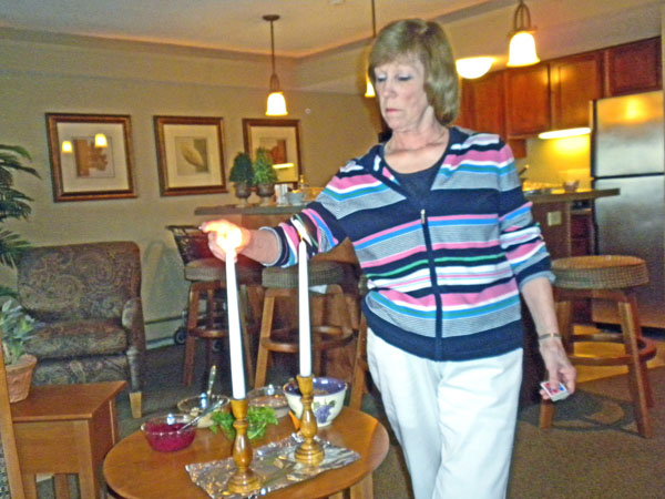 This was Grandma Linda's second year participating in one of these celebrations, so she was our personal tour guide through the event since she was now an "expert". Apparently the book that George bought for the ritual was different then the version she went through last year. She pointed out on multiple occasions that this one was a lot longer and she kept asking if we could skip ahead. I had to remind her that Patience is a Virtue! She did seem happy when she got to light the candles, though.