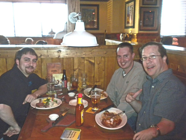 On Tuesday night, I went out to dinner with two of my very good customers, Garrett and Dustin from Lakes Technology Group. We went to the Outback Steak House which I still maintain serves one of the best steaks in the business! I was pleasantly surprised to learn that the local branch now offers to smother your meat in chunks of lobster and mushrooms. I know we were probably supposed to be talking about business, but all I could I do was bury my face in that steaming plate of succulent goodness!