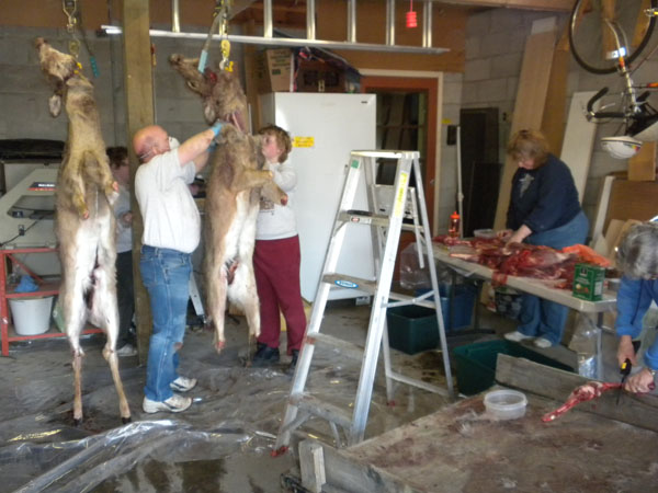 I was quite impressed at their deer butchering abilities. It took them between eight to ten hours to clean all of them from start to finish. They hung them from the rafters, pulled off the skin, and took off the meat piece by piece. They were kind enough to let me take pictures. I'm kind enough to leave the most gruesome ones off my site. I'm certainly no vegetarian, but I'll be honest that I had a bit of a difficult time seeing this performed. It was a first for me. I later told Miss Sheri that if Armageddon hits some day and we're forced to provide for ourselves, we're going to have some problems. Because if this is the only way I can get food for the family, I'm afraid we're all going to end up starving to death.