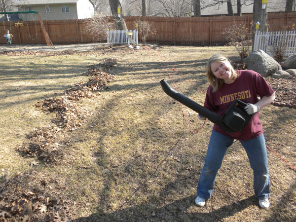 Even though she grew up on a farm where all sorts of animals were raised to eventually become food, Miss Sheri wanted no part of seeing the deer butchering. She was much more content just hanging out in our back yard blowing stuff.