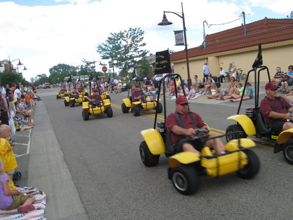 The parade lasted about an hour and a half and featured all sorts of different floats and interesting characters going by. One of my favorites was this group of dudes speeding by in these little cars. They were zigging and zagging and doing spin-outs to the delight of the crowd. I thought for certain they were going to crash because of the risks they were taking, but they must have really known what they were doing because everything worked out just fine. Thank goodness!