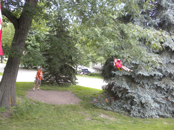Luke told me that Uncle Dave was pushing him really high on the swing in the front yard, but I had no idea it would go this high until I went out for this picture. Then I went back inside and prayed for his safety.