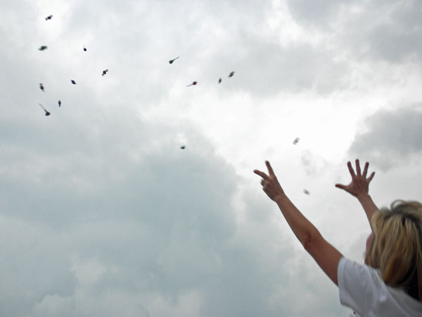 Of course, no parade would be complete without having mass amounts of candy tossed at us. Aunt Tracy loved rallying the kids to go for it whenever a tootsie roll or sucker ended up in the street near by us. Eventually it seemed that even God was getting in the act as the candy just seemed to rain down us from the heavens!
