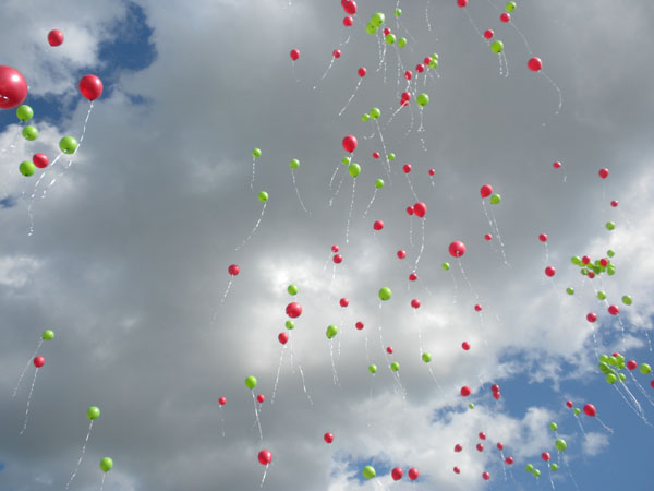 whole bunch of balloons! Instead of throwing rice at the bride and