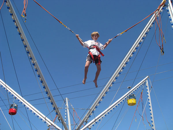 Avery was more than willing to go up in the air a little after being strapped to a bungee cord hovering above a trampoline. Ahhhhh, the things we do for fun!