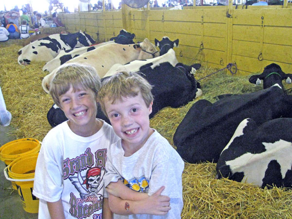 The boys really enjoyed going to the animal barns where we saw horses, cows, and even a baby sheep being born! It was pretty neat watching their cute little expressions as they witnessed the miracle of birth and then getting to see the Mama sheep eating the leftover placenta when she was done. It was just so sweet!