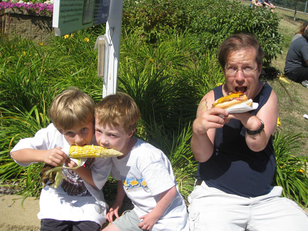 We thought this picture would be really funny until shortly afterwards when I spilled this cheesy steak sandwich all over my nice, white shorts. It was really fun walking around the fair for the rest of the day with bright orange splotches all over my crotch.