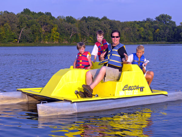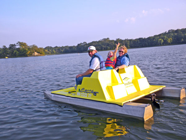 After golf, we decided to rent some paddle boats and go for a ride across the lake. I volunteered to take the three boys because I thought they'd be great help at paddling the boat. I predicted that one wrong. Man, did I get tired on the ride back!