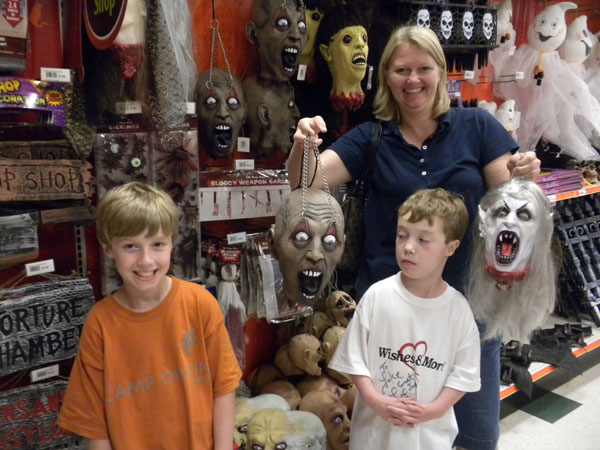 Fall is here and right around the corner is Halloween! We love Halloween at the Shortarmguy house because it's one time of year that we can scare the crap out of our kids and they don't get to call the authorities on us! We went to the Halloween Store to test drive some severed heads on each of the boy's fragile psyches. They didn't cry very loud so we decided to hold out for something better.