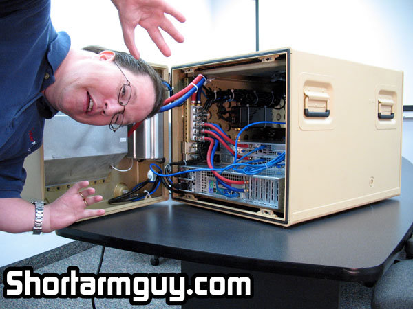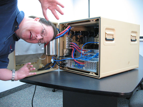 I'm hanging out in front of one of Nor-Tech's latest creations, The Sealed Cluster. This is basically a portable super computer that can be operated while totally sealed which comes in very handy in harsh environments. The military buys a bunch of units that are similar to these to be used on their unmanned aerial vehicles. I'm creating a marketing plan to sell these to people who want to play really cool video games while located outside during the middle of a major hurricane. At roughly $60,000 apiece, I think we'll sell thousands of these into that burgeoning marketplace!