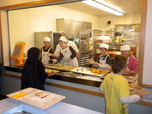 No idea what's happening here. The boys don't do a lot of cooking or serving meals at home, so the only thing I can guess is that they were in trouble for something.
