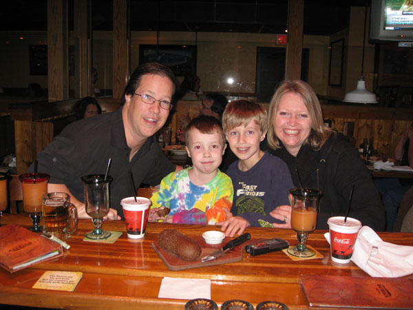 On Saturday night, we went to the best Steakhouse in the nation, the Outback Steak House! The place was packed, so we started our evening at the bar and enjoyed the twofer specials! Since the tables around the bar are first come first serve and she had some hungry boys, Miss Sheri had been watching for an open booth. When she spied one, she stood by and waited for the busboy to clean it. Suddenly, a grumpy old man swooped in and took it right under her nose. She was quite upset that she was just treated so rudely. I told her to not feel bad about it, because that man was probably going to die soon and she was doing the right thing to let him have it. Strangely, this made her feel better about things.