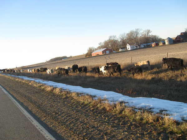 On Friday afternoon, we participated in a stampede of a different sort. We joined one of Jerry's farmer friends as he attempted to walk his herd of cattle from one field to another one a mile down the road.