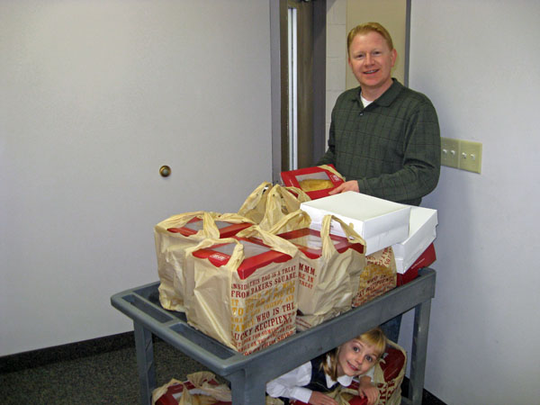 I knew Thanksgiving was in the air when I saw Dr. Bollig walking around Nor-Tech with his cart full of pies! For as long as I can remember, David has continued his generous tradition of giving every one of his employees a nice pie on Thanksgiving Eve. Sadly, I missed out on one of the delicious French Silk pies and instead had to settle for a country apple. I was still very thankful, though, because there's an old Shortarmguy Family Motto that says "Never ever complain to a man that is giving you a free pie." I try to live my life by that motto.