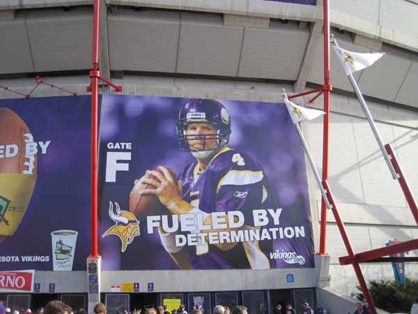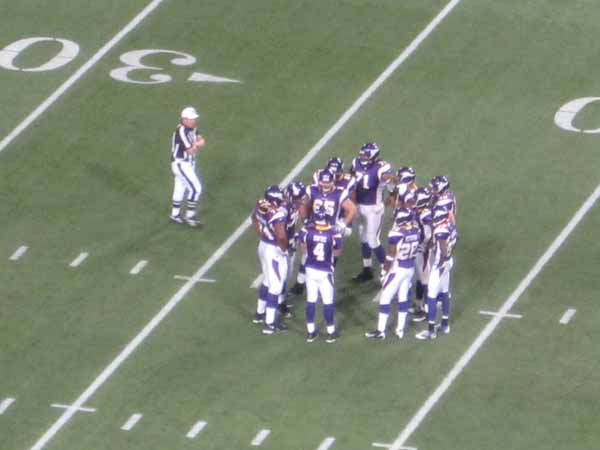 This was our first game of the year and therefore our first time seeing #4 in Purple and Gold. He didn't do anything overly fantastic throwing for 192 yards, a touchdown and an interception, but it was still amazing watching him play for the home team. We'd gone to several games when he played for the Packers and he usually ended up whipping our butts so it was nice to be able to cheer for him for a change.