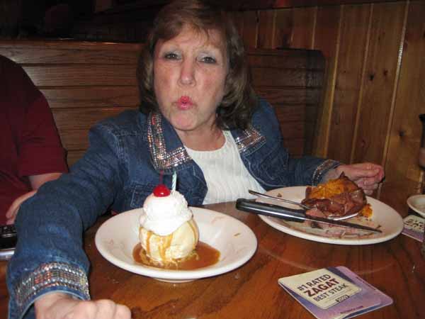 I told the waitress that it was mom's birthday and I'd really like her to do something special for her. She sighed, looked at my mom and dead panned: "I can bring you a sundae. Will that make you feel special?" Judging from the look on mom's face, I think the waitress hit the Bull's-eye with this one!
