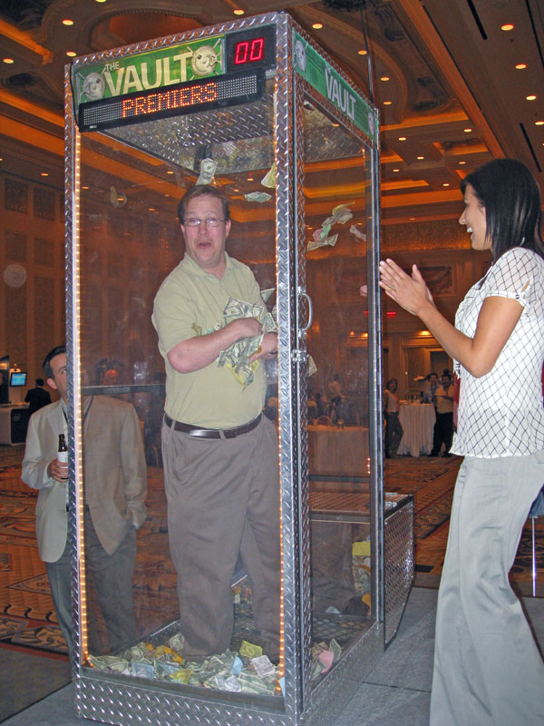 Back on Earth, I was lucky enough to be selected to go into the Cash Vault at one of the Intel events they planned for us. When I first heard I was going in there, I didn't have a good feeling about it. God didn't really make my body for the intent of pulling in a bunch of bills in a 15 second time period. But I'm proud to say the little arms did pretty well allowing me to grab on to $73 bucks! Not too shabby!!