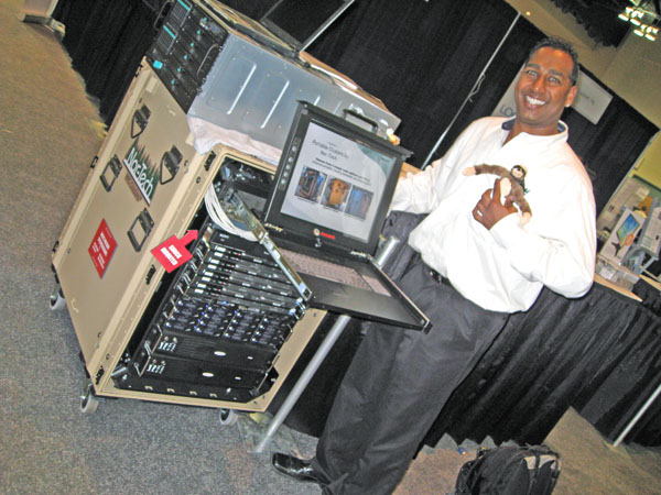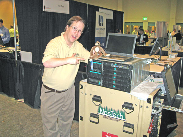 Mr. Rahman is seen here demonstrating Nor-tech's Portable Cluster which has been well received by various clients in the military, in the oil and gas industry, and in higher education. Even better than that, though, Nick also discovered the booth with the company giving away the flying monkeys! Those flying monkeys were the highlight of our day!