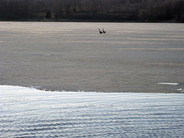 I felt sorry for the geese walking around on the ice. I figured they must be searching for the water, but they just couldn't seem to find it. I kept yelling "It's over here, dummies!" but they didn't seem to listen.