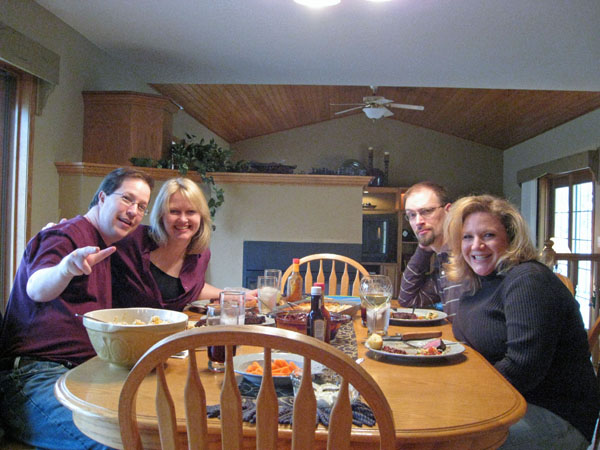 On Saturday night, we had our old friends, Steve and Melissa Cuddihy, over for dinner. Long time visitors to Shortarmguy.com will remember Steve "Cuds" Cuddihy as the original Shortarmguy Stalker. That's all over now. Once I started letting Steve have his way with me on a regular basis, his whole stalking desire just seemed to disappear.