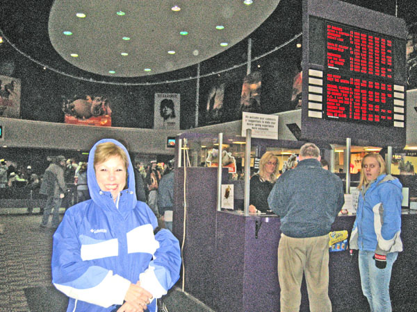 On Friday night, Grandma Linda and I went to see No Country for Old Men. What a Cheery Movie that is! I just love tales of murderous psychopaths! I really hope Juno crushes it at the Oscars. I wanted to get a picture of Grandma standing next to the movie poster, but we couldn't find one. So we stepped back in the lobby for this shot. I don't think the lady standing in line really understood what it was we were doing.