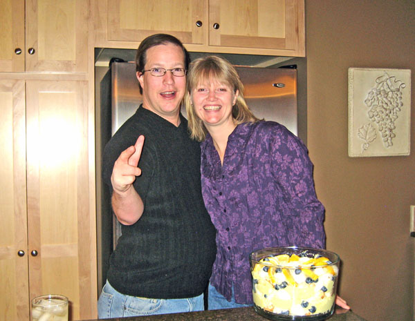 According to Wikipedia, a trifle is a dessert dish made from thick (or often solidified) custard, fruit, sponge cake, fruit juice or, more recently, jelly (gelatin), and whipped cream. Katie created an incredible Trifle concoction featuring lemon pudding, blueberries, and Angel Food Cake. When it comes to hosting a dinner party, I'm pretty sure Martha Stewart calls Katie to get some tips!! Miss Sheri and I were very excited because one of our biggest fantasies in life was to eat a dessert just like this. Now we get to cross that sucker off the list!