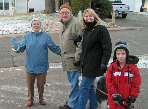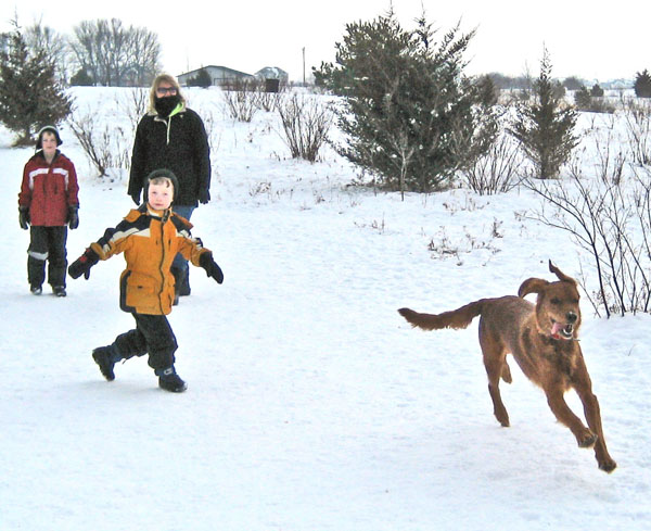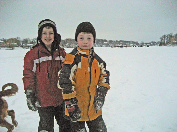 It's been below freezing for about 6 weeks in Minnesota, so the boys and I finally were brave enough to take Sunny for a walk across Prior Lake. Cars and trucks have been driving on it for a few weeks, so I guess it's strong enough to hold our weight....but I'm always still paranoid! I can't imagine a much scarier thing than to have one of us fall through the ice! We came across an abandoned ice fishing hole and some how Avery slipped his foot into it and soaked it. That ended our journey a bit earlier than expected.