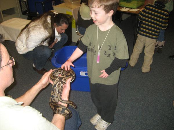 They had pizza, a dance, games, a magician, and a guy who brought a whole bunch of reptiles for the kids to harass. It's very interesting to witness that no matter how many times a kid pounds on a snake cage, they just won't seem to do any tricks. Stupid snakes.